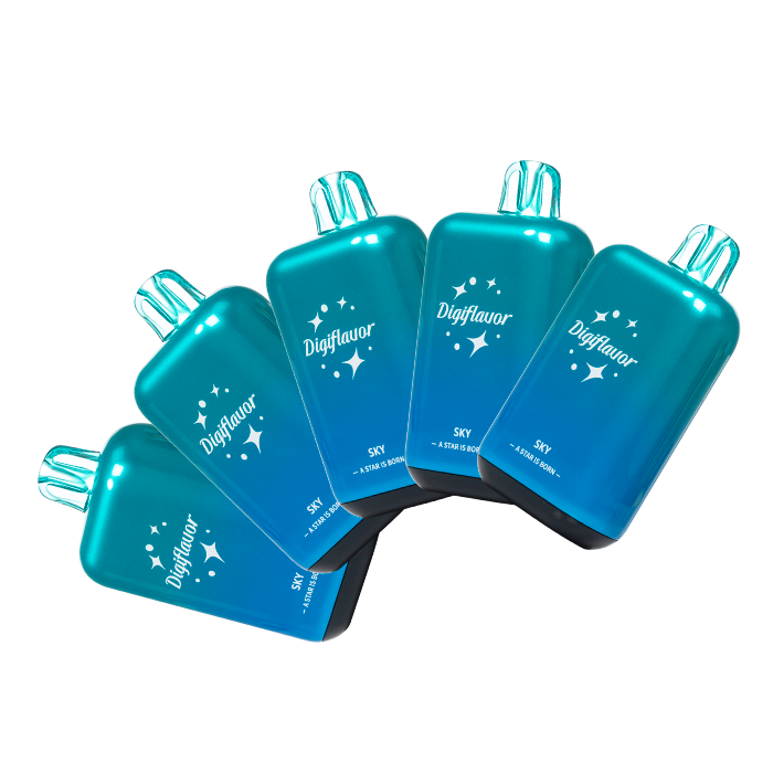Der [5er-Pack] Digiflavor SKY 25K Disposable verfügt über ein modernes, kompaktes Design, das bequem in der Hand liegt. Das schlanke Äußere ist auf Langlebigkeit ausgelegt und behält gleichzeitig ein stilvolles Aussehen. Das ergonomische Mundstück sorgt für einen bequemen Zug und verbessert das gesamte Dampferlebnis.
